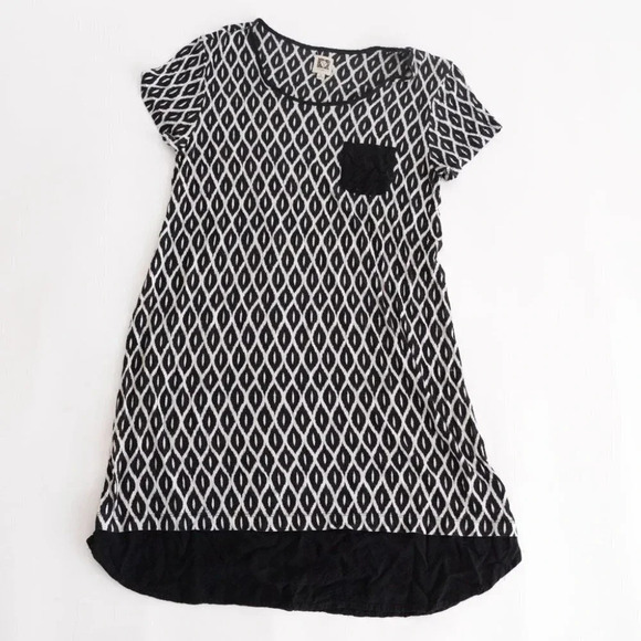 Anne Klein Small Tunic Dress Top Black & White Diamond Pattern Woman's Small