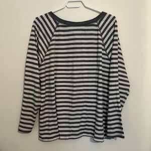 Chic Anne Klein striped Henley top with long sleeves. Features a classic button-up neckline.