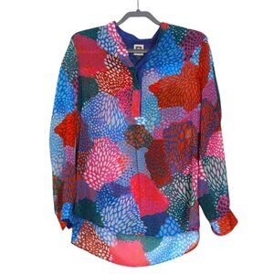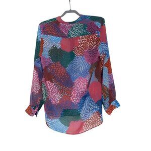 Anne Klein Tie Pool Maximalist Fairy Artsy Abstract Retro 70s Festival Blouse 12