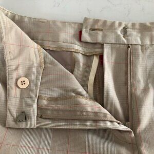 Anne Klein Vintage High Waisted Check Pants in Polyester/Rayon Blend in Taupe, Tan, white + Orange