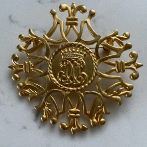 Anne Klein Vintage Gold Tone Metal Brooch & Earrings
