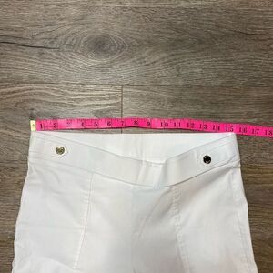 Anne Klein White Elastic Waist Seamed Pants Size 8 Stretch Gold Buttons