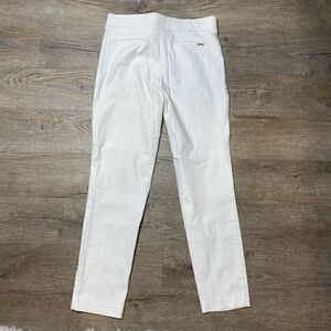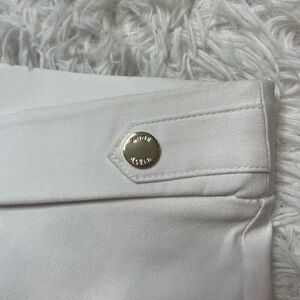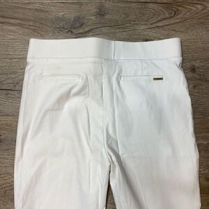 Anne Klein White Elastic Waist Seamed Pants Size 8 Stretch Gold Buttons