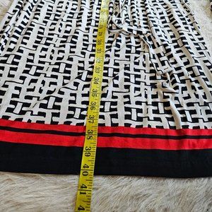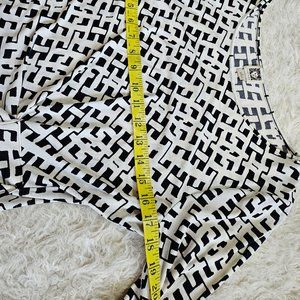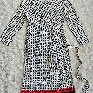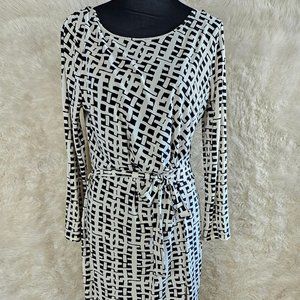 Check out this Anne Klein Women's Black and White Pattern Long Sleeves Round-Neck Wrap Dress is in excellent pre-owned condition, no rips no stains on it.