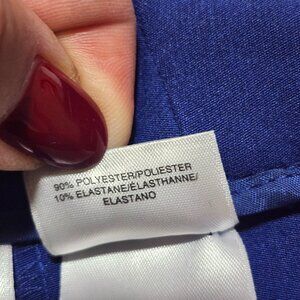 Chic and versatile, these Anne Klein women’s pants feature a rich cobalt blue shade that adds a touch of elegance to any wardrobe. Made with a stretch blend, they offer comfort and a flattering slim fit silhouette. Perfect for the office, formal occasions, or styled casually.