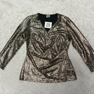 Check out this Anne Klein Women's Gold Sequin Deep V Long Sleeve Blouse in excellent new with tag condition.