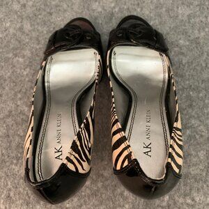 Anne Klein Women’s Leather Heel Black and Cream Zebra Pattern Peep Toe Shoes