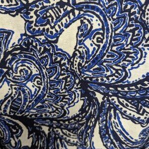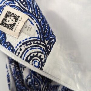 The Anne Klein sleeveless dress combines elegance with comfort, featuring a beautiful blue and white paisley design. Ideal for both professional and casual settings.
