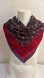 This Anne Klein for the Vera Companies vintage scarf is a rare collaboration piece made in Japan. Crafted from 100% wool, it features a striking geometric motif in rich jewel tones of brown, blue, red, and gold, framed by a crimson and violet border. The intricate design and fine wool texture make it a standout collectible — sophisticated, soft, and timeless.