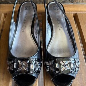 Anne Klein iflex Women's Black Embellished Slingback Heels