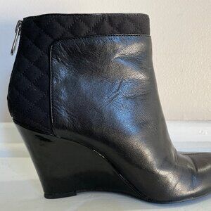 Beautiful and modern Anne Klein booties. Black leather and fabric. Wedge heel. Size 6.
