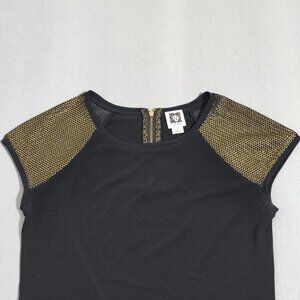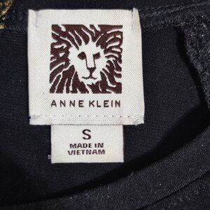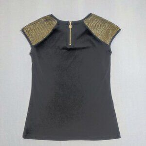 Anne Klein sleeveless blouse women's sz S black with gold decoration on shoulder