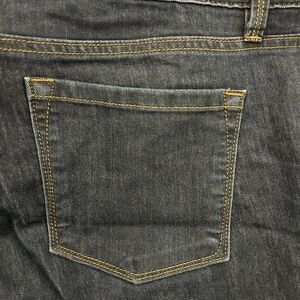 Dark wash denim jean from LOFT, size 14 with “modern flare” jeans have great stretch to them and the denim is soft and comfy, making these a great fit. The dark wash and cut make them good for business casual or casual situations. 76% cotton, 22% polyester, 2% spandex. 19.5” at waistband, 22” across hips, 39” length from waist to ankle.