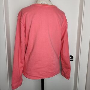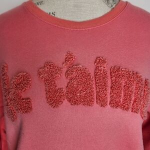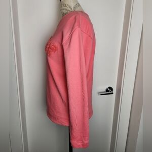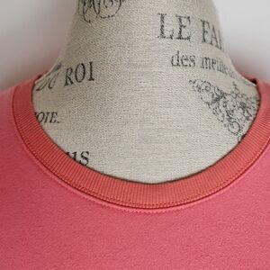 Coral Pink Crewneck Long Sleeve Sweatshirt with 'Je T'aime' Embroidered Patch Front, LOFT by Anne Taylor.