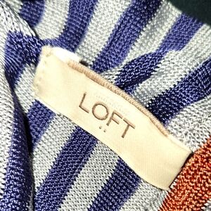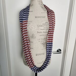 Red Blue & Grey tightly woven Chain Stitch Knit Infinity Scarf, LOFT by Anne Taylor.