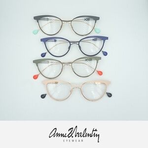 Lightweight cateye frames made with the highest quality Japanese titanium by Anne & Valentin. Comes with the original case and cloth. I originally purchased the frames in 2022.