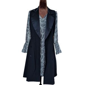 Elegant black double-breasted longline tuxedo dress / longline with satin lapels. Perfect for layering.