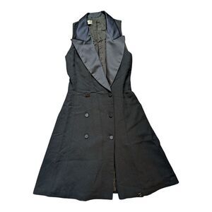 Anne Klein Black Double-Breasted Tuxedo tailored Dress with Satin Lapels Sz S