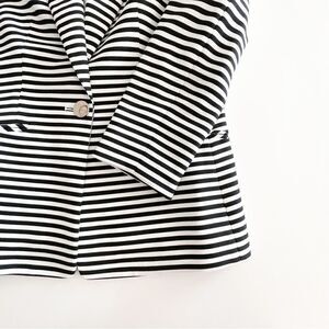 Anne Klein Blazer Black White Stripe Single Button Long Sleeve Women's S Jacket