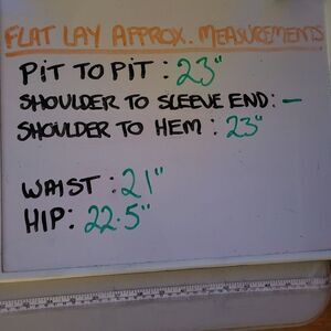 No stains or tears or pil or fade, etc. See pics for further details, including the measurements. Please see the flat lay approximate measurements for your fit.