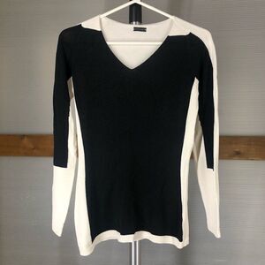 ANNETTE GORTZ Dina Black White Lightweight Knit V-Neck Pullover Sweater Sz S