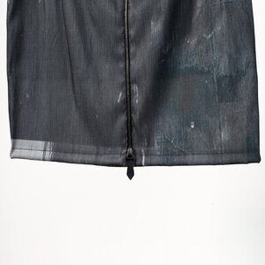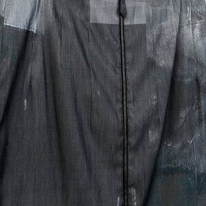 This paint splatter skirt Annette Gortz features pleat accents running all around the skirt, paint splatter graphics printed throughout the skirt, bottom hem, full interior lining, and full zipper closure down the backside of the skirt.