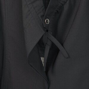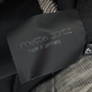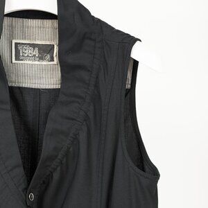 Made in Germany, this Tess vest from Annette Gortz's 2011 Spring and Summer collection is crafted in a black stretch wool, and is trimmed in a striped cotton. It features a sleeveless design, a V-shaped neckline with drawstring cinching, front button closures, a cinched drawstring waist, front zip pockets with chain detailing, and a back vent.