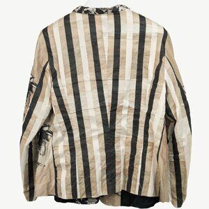 Made in Europe, this Minda blazer from Annette Gortz's 2017 Spring and Summer collection is crafted in a taupe floral jacquard, and features long sleeves, slit cuffs, a notched lapel collar, hidden front snap closures, front flap pockets, and a striped back.