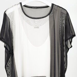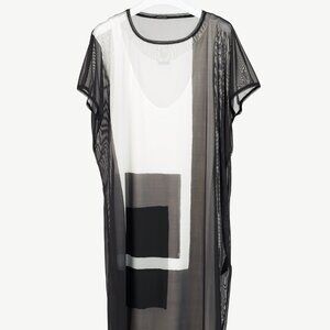 Made in Turkey, this Balu dress from Annette Gortz's 2020 Spring and Summer collection is crafted in a black mesh printed with a white geometric design, and features cap sleeves, a scoop neck, an oversized fit, a midi-length hem, and a white printed jersey liner.