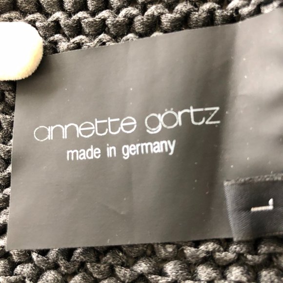 The avant-garde fashion creations by Annette Görtz are timeless, natural and to the point. Beautifully made cardigan with front button closure that rolls out of the way when you wear it open; exposed front pockets, side and shoulder gussets, and 3/4 length sleeves.