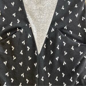 These fabrics feel like your favorite hoodie. It's almost like a sweatshirt jersey knit with a really good weight to it so it drapes nicely. I love the fun little exterior front pockets, and the heart pattern. Such a cute sweet dress. This perfect for work, a great dress if you have kids and are out running errands but you want to look chic and cute, great for lunch out with friends or an easy date night.