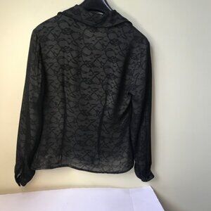 Annie Alexander 100% Silk Lace Print button down Shirt Blouse,