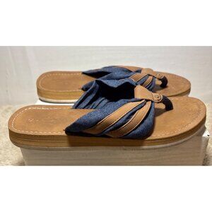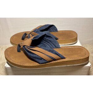 Annie G. Womens Brown & Blue Denim Bow Slide Sandals Size 5.5
