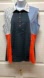 Interesting colour block which is asymmetrical in two different blues, orange and white print