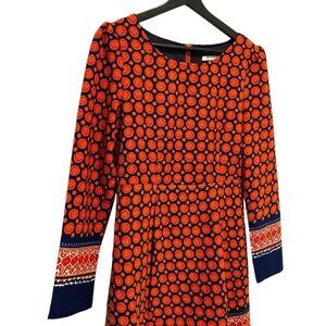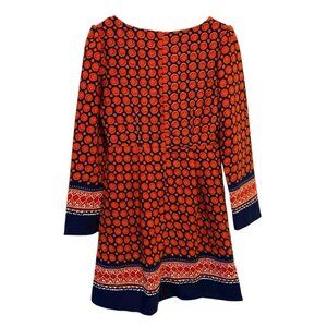 Anonyme Size 6 Mediterranean Moroccan Print Orange and Navy Sheath Dress