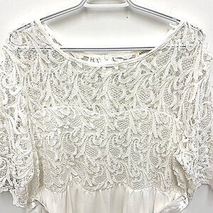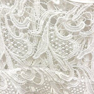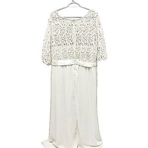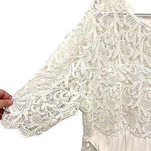 Anself White Crochet Back Zipper Sheer Panel Elbow Sleeve Draped Gown Dress 5XL