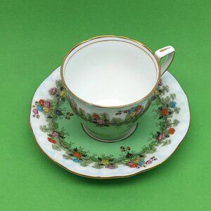 Ansley cup and saucer green bone of china made in England vintage from the 50's