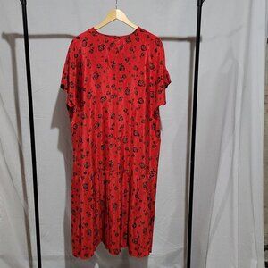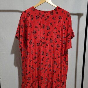 Antels dress vintage red and black plus size loose dress black roses floral 80s