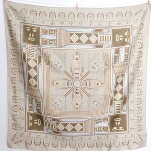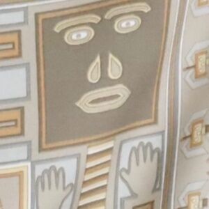 Featuring light tan neutral beige tones with a Northwest Coast (Salish?) First Nations / Indigenous pattern