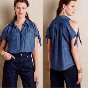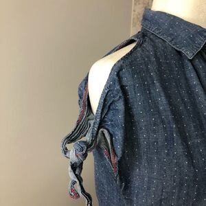 🚨 Anthro Holding Horses Cold Shoulder Chambray Dot