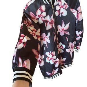 Anthro Luna Moon Oversized Floral Satin Long Bomber Jacket- Size Small NWOT