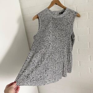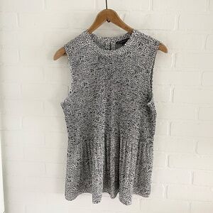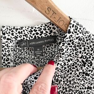 Anthro X Adrianna Papell Peplum Blouse Pleated Smocked Key hole Animal print M