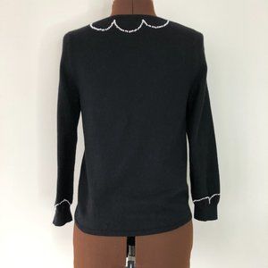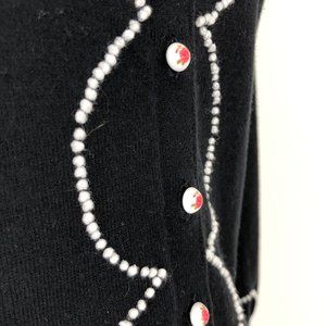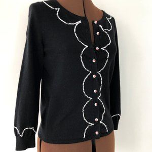 Sweet long sleeve cardigan has french knot embroidery and floral print buttons for charm, and a touch of cashmere for softness.