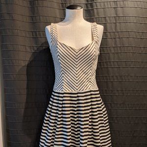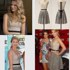 Beautiful cream and black striped cotton corset-style dress by Corey Lynn Calter, as seen on celebrities like Taylor Swift and Dianna Agron.