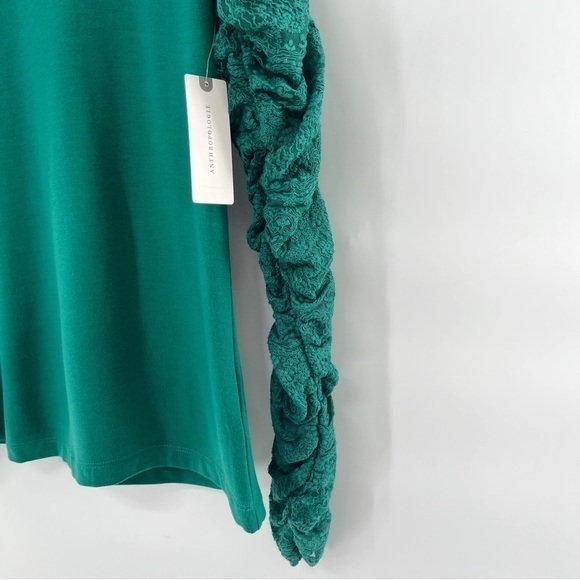 Maeve Anthropolgie long sleeve top with lace ruched sleeves