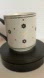 Anthropologie Bistro mug with a monogrammed 'A' design. Features a black handle and mosaic tile gold and black pattern.