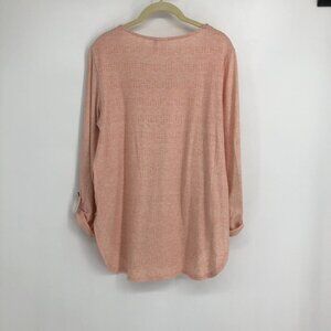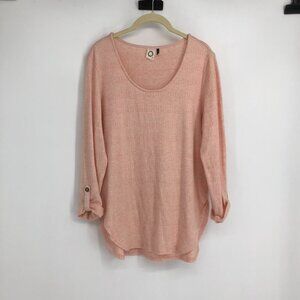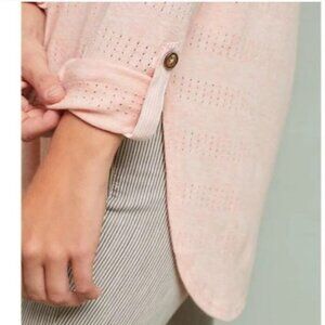 Anthropologie Akemi + Kin Pink Sylvie Pointelle Knit Long Sleeve Roll Tab Top S