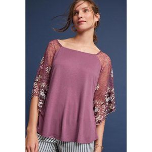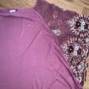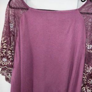 Mauve knit body with flowy metallic embroidered lace batwing sleeves. Relaxed and flowy fit; normally I'm a small but got this in an XS. Beautiful and ready for a night out. Worn once, new condition.