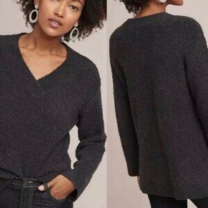 Anthropologie Alpaca Merino Wool Simone Sweater Grey Size XS Knit V-Neck Boho