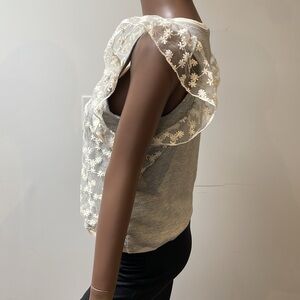 Amadi Anthropologie Floral Blouse Top Flutter Sleeves Sheer Textured Cream XS